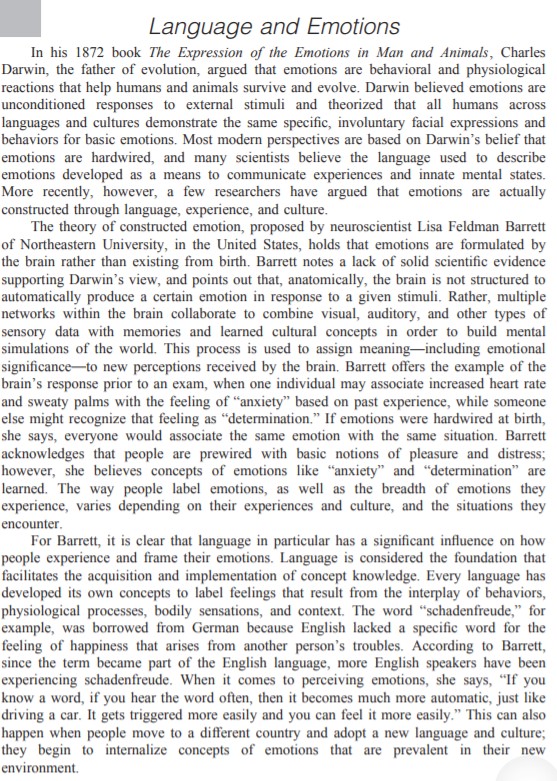 Darwinの説「感情は、人間に備わったもの(hardwired)で言語はそれを表す後天的なもの。感情は先天的で言語は後天的である。」とその反対の説の提唱。