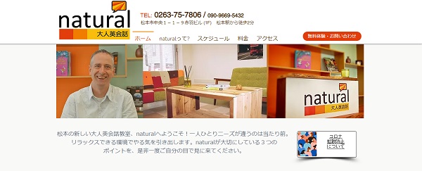 natural大人英会話は、松本駅から徒歩2分という便利なロケーションにある中学生以上を対象とした英会話教室。レッスンは全てベテランのオーナー講師(ネイティブ)が担当し、一人一人丁寧に指導しています。スピーキング中心のレッスンで、実際に「使える」英語を学びたい人におすすめ。